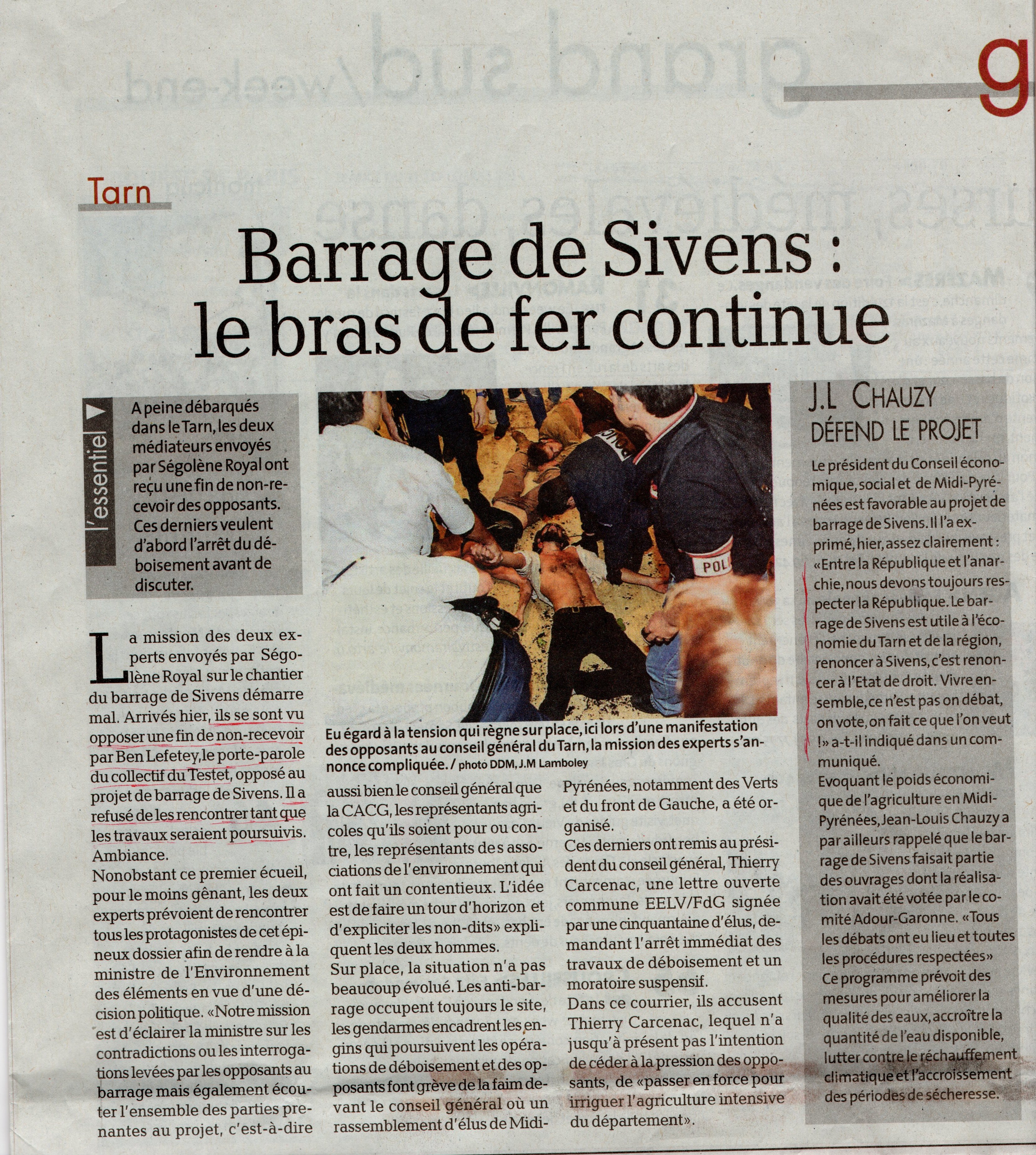 " le projet de barrage de Sivens n’a absolument pas été validé de façon définitive par la justice, puisque pas moins de 3 recours au fond sont en cours, en plus d’un référé suspension devant être audiencé dans les deux semaines à venir. " lire la suite